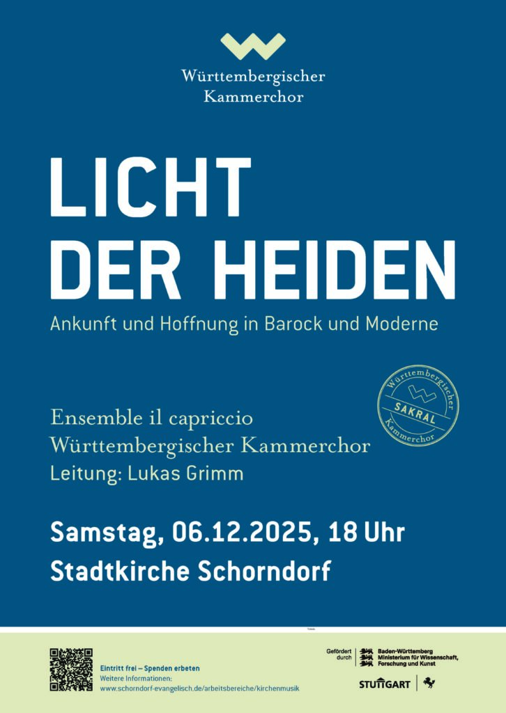Samstag, 6. Dezember 2025, 18 Uhr, Stadtkirche Schorndorf.