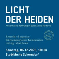 Die Schorndorfer Kantorei wurde 1997 als Chor an der Stadtkirche Schorndorfgegründet. Neben liturgischen Chorwerken, Kantaten weiterlesen ...